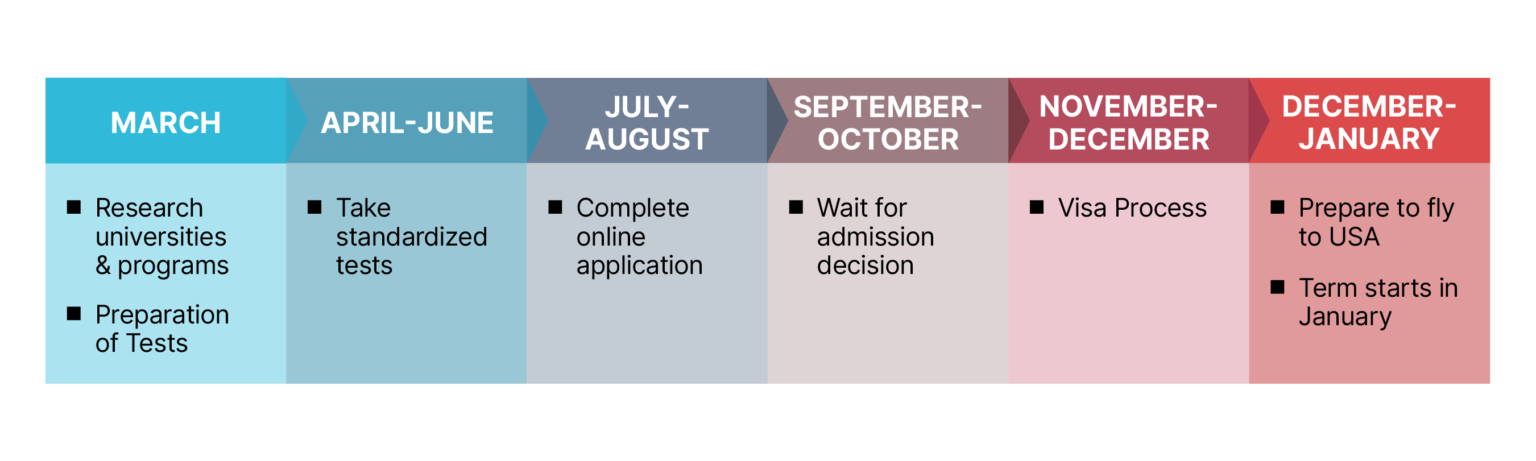 Now that you are determined to apply for PhD in US universities, it is highly important that you know the admission process timeline. Generally, the admission in US universities are done in two cycles; the Fall cycle and Spring cycle. Every university follows their own timeline, however, a generic and simplified timeline for each cycle is created below for your understanding.